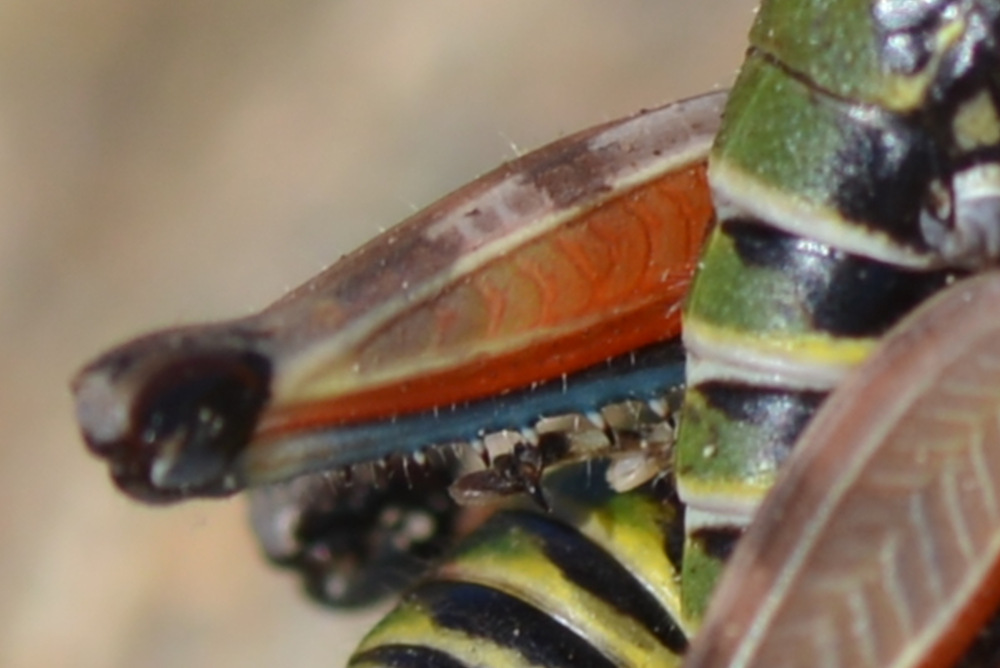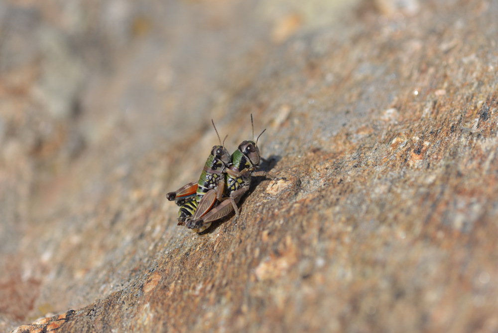 Tant que j’y suis, je tenais à vous présenter Cophopodisma pyrenaea, orthoptère de la sous-famille généralement montagnarde des Melanoplinae, rencontré sur le Barbet. Cette espèce est relativement courante par rapport aux autres. Élytres absents, espèce aptère, et, particularité notable, tibias postérieurs bleuâtres !