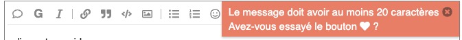 @jemlevin j’imagine que les concepteurs de Discourse ont voulu éviter les messages trop concis du type « +1 » qui peuvent effectivement être pénibles. Comme te le disait @thouloup, le mieux serait que tu crées un sujet spécifique dans la catégorie #retours-sur-le-site, j’irai voir où ça se situe dans les paramètres.