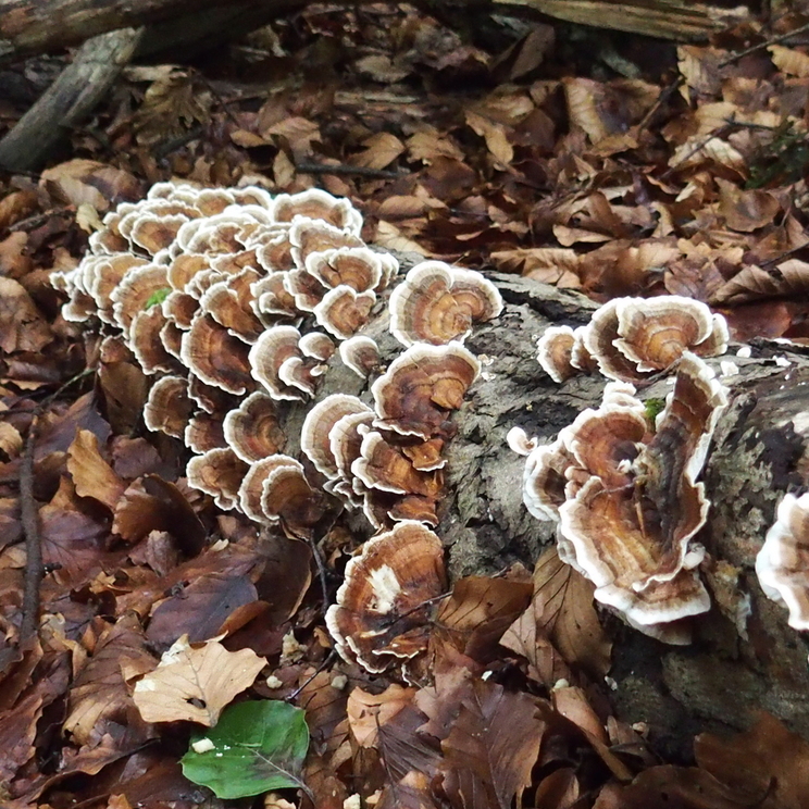 En révisant, j’ai retenu que la tramète présente de fins pores sur sa partie fertile, le dessous du chapeau, alors que le stereum, lui, présente un revers du chapeau totalement lisse