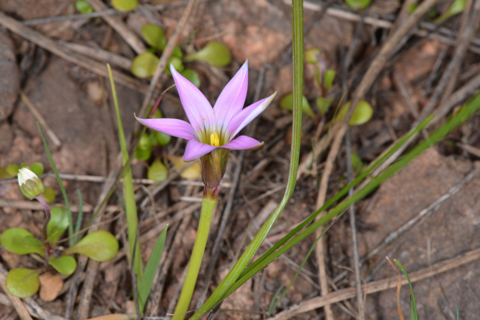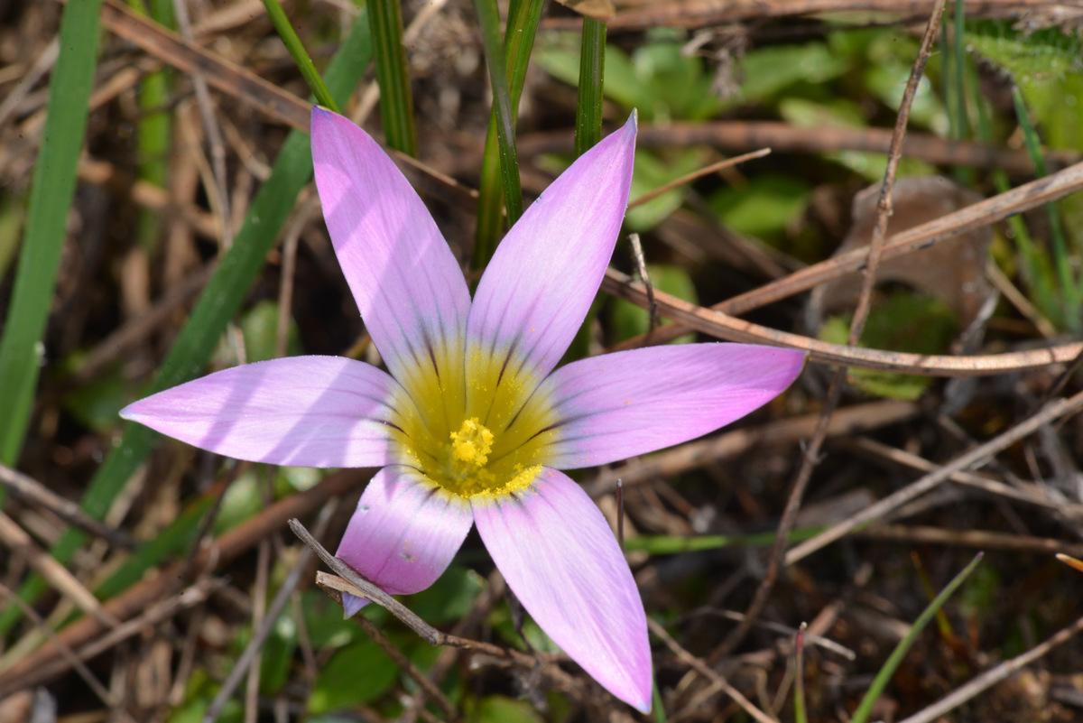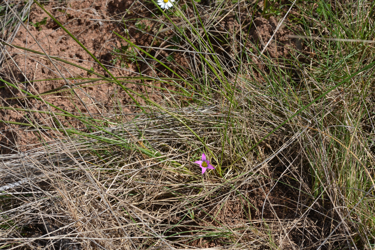 Je viens de passer un certain temps à tourner en rond dans une clef, en retombant à chaque fois sur les Iridacées puis les Romulées qu’inconsciemment j’écartais systématiquement, pour finalement me rendre compte que oui, ce pourrait bien être une Romulée, mais originaire d’Afrique du Sud, à savoir Romulea rosea, qui pour le coup n’est recensée ni dans la Flore Méd. ni dans Flora Gallica :