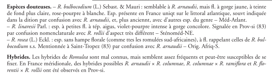 En vrai la Flore Méd (en tout cas la version PDF) est plus prudente et la cite en tant qu’espèce « douteuse », « mentionnée à Saint-Tropez (83) par confusion avec R. arnaudii ».